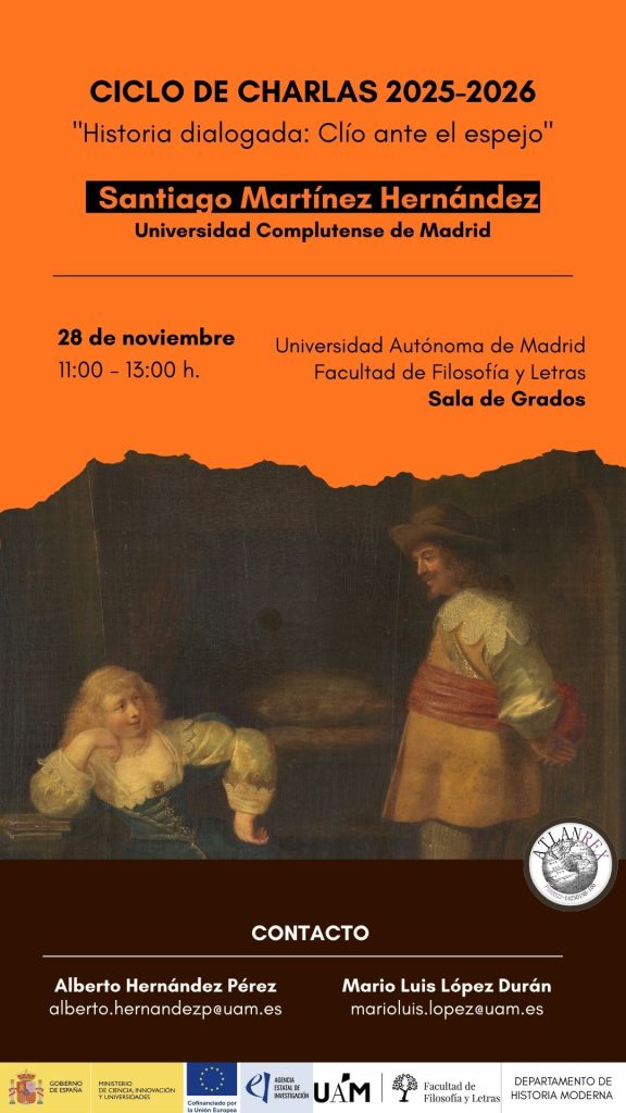 Alberto Hernández Pérez y Mario Luis López Durán organizan el ciclo de charlas 2025-2026 «Historia dialogada: Clío ante el espejo» con varias sesiones. En esta nueva sesión del día 14 de noviembre entre las 11-13hs (horario peninsular) se contará con la presencia de Bernardo José García García (Universidad Complutense de Madrid).