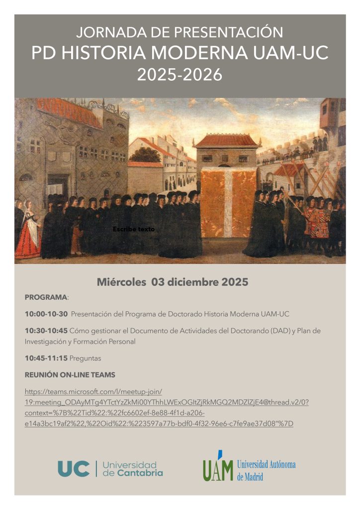 Abierta la preinscripción a los Estudios de Doctorado en el Programa de Historia Moderna