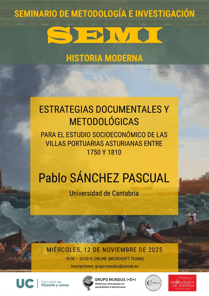 En esta segunda sesión del XVI SEMI contaremos con la presencia de Pablo Sánchez Pascual de la Universidad de Cantabria. Su ponencia lleva por título «Estrategias documentales y metodologías para el estudio socioeconómico de las villas portuarias asturianas entre 1750-1810».